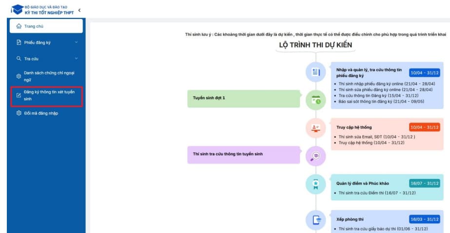 Cổng thông tin Đăng ký – Tra cứu – Nhập học Online dành cho thí sinh